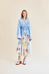 Chemise bi-matière en seersucker et popeline avec plis au dos, qui se noue selon vos envies devant ou derrière pour cintrer votre silhouette.