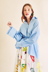 Chemise bi-matière à plis baby blue
