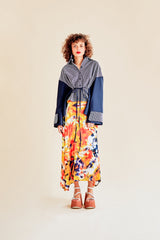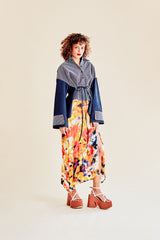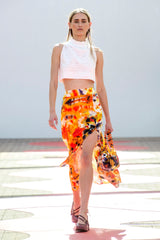 Jupe longue en soie tie & dye inspirée des couleurs dégradées du soleil d'Ibiza.