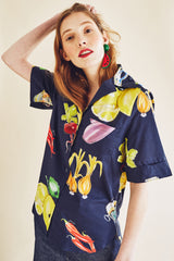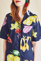Chemise à imprimé légumes méditerranéen navy