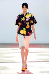 Chemise style manches courtes, et imprimé légumes méditerranéen.