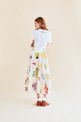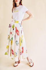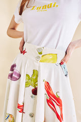 Jupe soleil à imprimé légumes méditerranéen ivoire