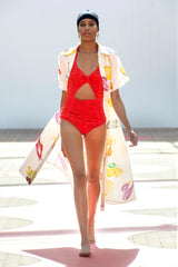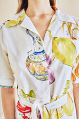 Robe chemise à imprimé légumes méditerranéen ivoire