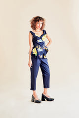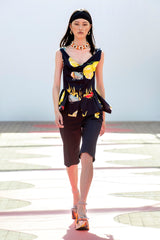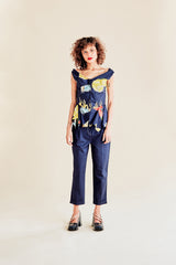 Top en popeline à imprimé légumes méditerranéen, l'air de dolce vita avec son inspiration corset et son bas évasé.