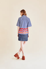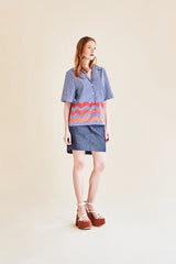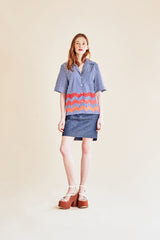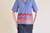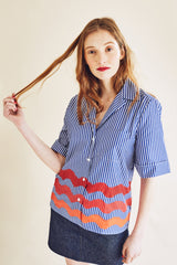 Chemise manches courtes à rayures et imprimé vagues.