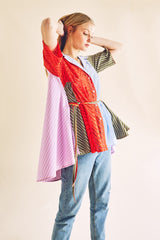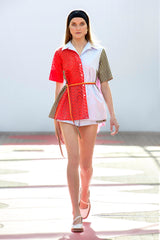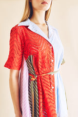 Chemise bi-matière en popeline de coton et broderie anglaise, qui se noue selon vos envies devant ou au dos pour cintrer votre silhouette.