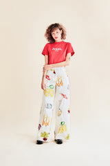 • Pantalon en popeline à imprimé légumes méditerranéen signé JOUR/NÉ