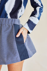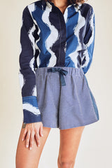 Short bi-matière avec bandes latérales en popeline et taille élastiquée, à porter pour une journée décontractée.