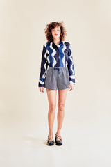 • Poches latérales • Fausse braguette • Taille élastiquée avec ruban de serrage en rayonne • Taille haute