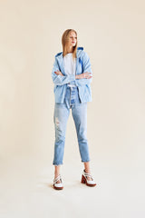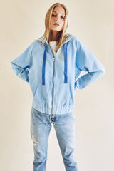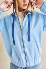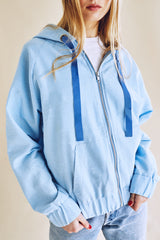 Gilet à capuche en seersucker à la coupe ample et confortable pour profiter de vos week-ends ou même à porter la semaine.