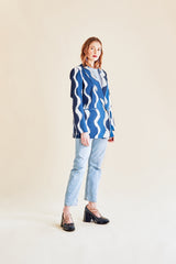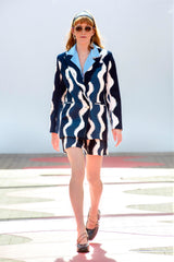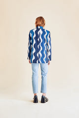 ** Livraison et retour gratuit Veste workwear à imprimé vagues. Le chic et la plage réunis en un look élégant. • Veste tailleur à 1 bouton en tissu workwear à imprimé vagues. |