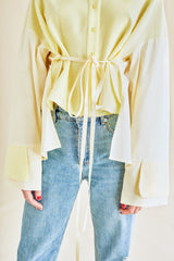 Chemise bi-matière en seersucker et popeline avec plis au dos, qui se noue selon vos envies devant ou derrière pour cintrer votre silhouette.